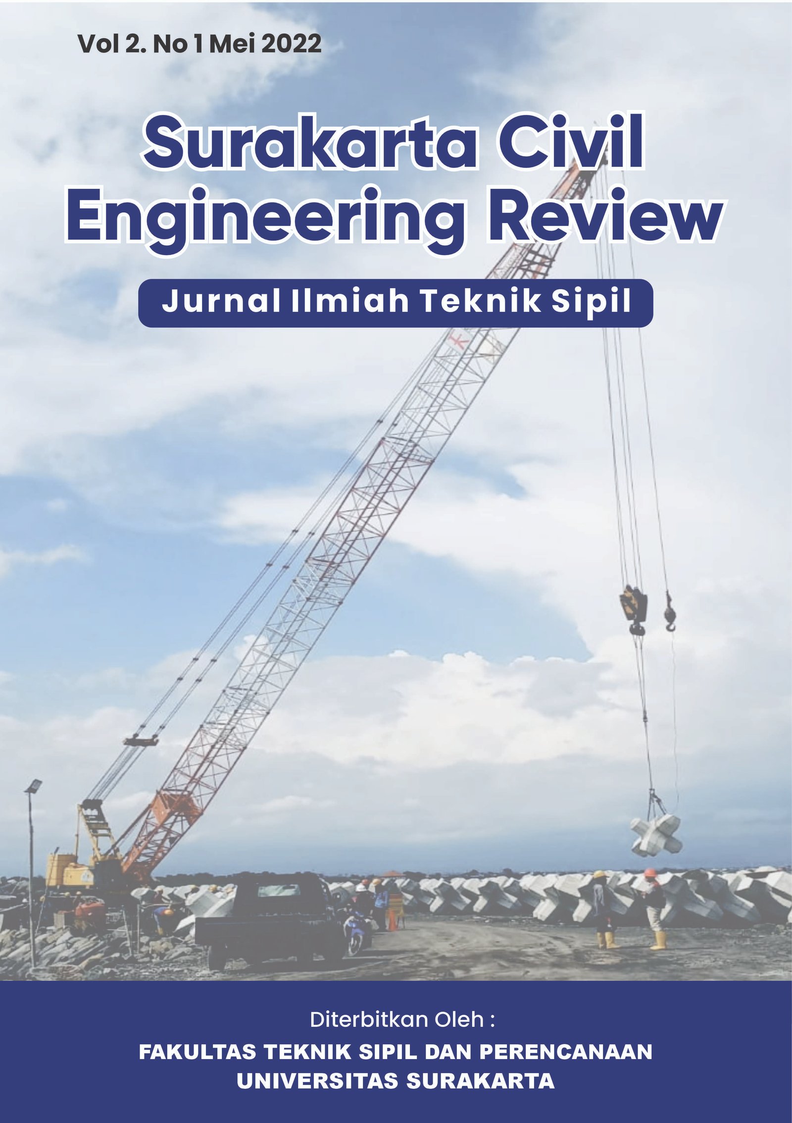 Surakarta Civil Engineering Review (SCER) is a scientific journal published by Universitas Surakarta, focusing on the field of civil engineering. It serves as a platform for the publication of research, studies, and scientific developments covering structures, geotechnics, transportation, construction management, hydrology, and other related areas. SCER is committed to presenting high-quality articles that contribute to academics, practitioners, and society in advancing knowledge and the application of technology in civil engineering.